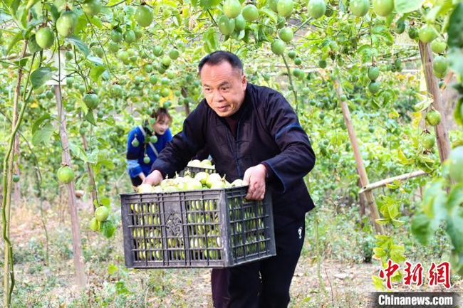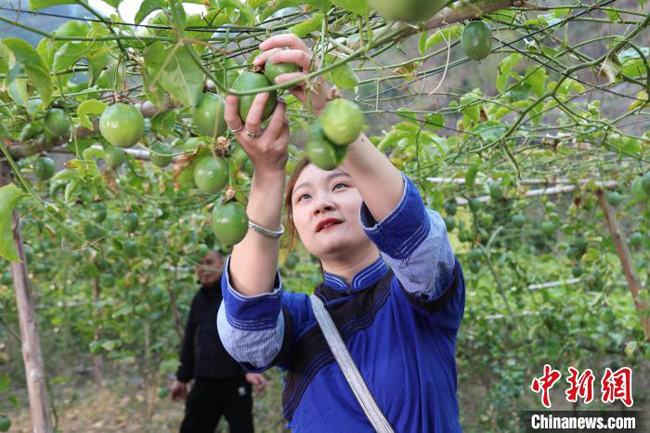图为村民正在采摘百香果。 隆林县委宣传部提供