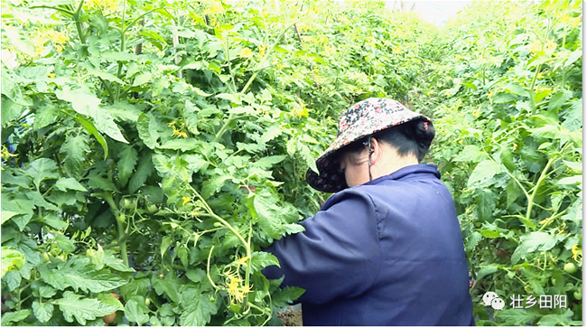 基地采取现代化的蔬菜种植技术,通过设立大棚,打破季节限制,实现了一年四季“一条龙”式的蔬菜生产,为村民提供更多的就业机会。前来务工的坡洪镇新洞村村民周大姐正在大棚里忙着采摘成熟的圣女果,她在基地的带动下,依靠就近务工增加收入。