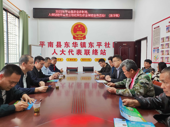 为将政策性农业保险这一工作彻彻实实落到实处,扩大农业保险的影响力和知晓度,提高农业保险的覆盖面和参保率,激发广大种植户、养殖户的投保积极性。日前,平南县农业农村局联合人保财险平南支公司、大地财险平南支公司到安怀镇安怀村、东华镇东平社区、同和镇平美村开展政策性农业保险宣传活动。工作人员细心的为镇、村干部及群众解答疑问,并详细的介绍政策性农业保险保障范围、保费补贴及保险理赔流程等内容,让广大农民群众更加深入的了解政策性农业保险的重要性。