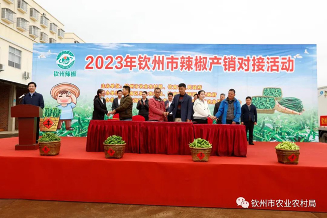 据悉,目前我市在田辣椒面积13.38万亩,预计产量达25万吨,一季度上市销售超1万吨。活动当日,钦州辣椒产销对接签约形成意向订单5200吨。