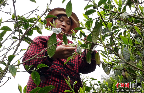 茶农在采茶叶。韦丽硕 摄