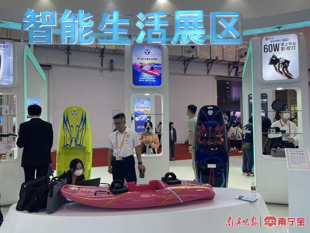 智享生活展区有7家企业携广西本地最新科技创新类产品集中亮相,包括上汽通用五菱的新能源汽车、南宁哪吒新能源汽车及桂林智神技术新研发的相机手持稳定器等高精尖产品。