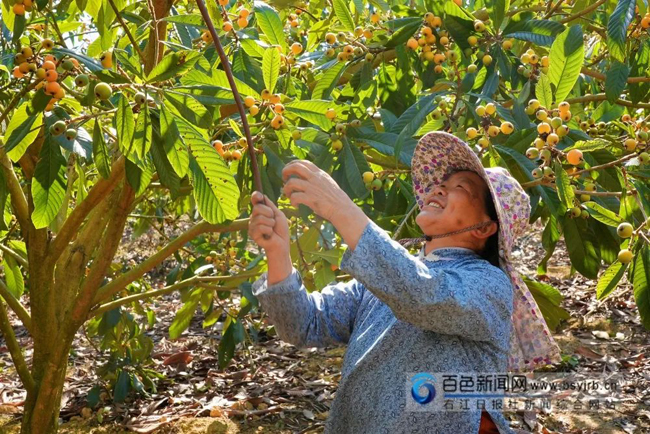 一串串金灿灿的枇杷挂满枝头,格外诱人,种植户们正忙着采摘。
