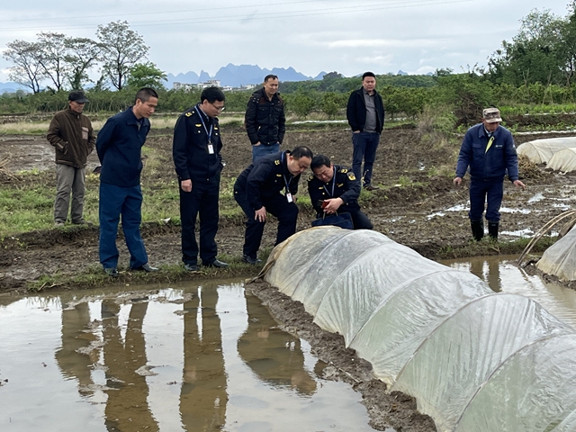 桂林市农业综合行政执法支队执法人员深入田间进行现查调查