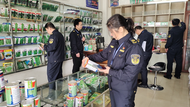 高质量的农资投入是粮食增收的基础保障。桂林市农业综合行政执法支队聚焦问题隐患、突出重点农资产品,集中力量、精准开展执法检查,安排执法检查小组对辖区内农资批发市场采取“地毯式”执法检查。截止目前,专项执法行动共出动执法队员170人次,检查农资经营企业(门店)62家,下达35份责令改正通知书,行政立案9起,发放宣传资料216 份,扣押涉嫌违法经营的农药953瓶、涉嫌违法销售的农作物种子1934袋。