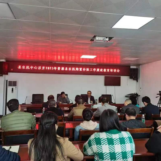 图为:资源县农机中心召开2023年农机购置补贴廉政教育培训会