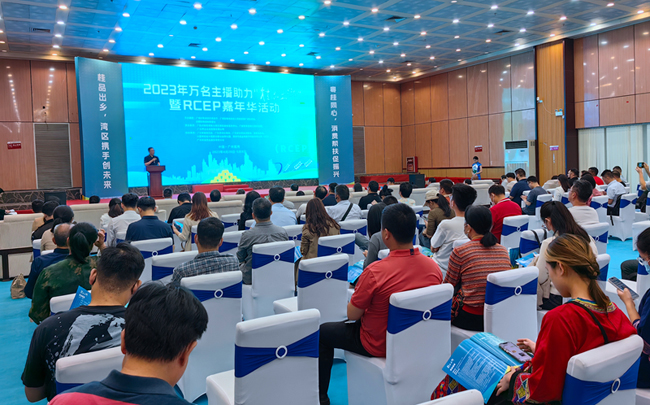日前,由广西壮族自治区人民政府驻广州办事处,广西壮族自治区商务厅联合主办,广西壮族自治区对接粤港澳大湾区建设综合服务中心、广西驻粤港澳大湾区妇联、广东厚土农业发展有限公司承办的“2023年万名主播助力‘桂品出乡’暨RCEP嘉年华活动”开幕式在广东东西部扶贫协作交易市场成功举办,贺州市农业农村部门组织了9家农业企业携50多种名特优农产品参加了此次活动。贺州的黄金酒,有机茶,英家大头菜、贺州香芋等都受到了国内外知名网红主播的喜爱。