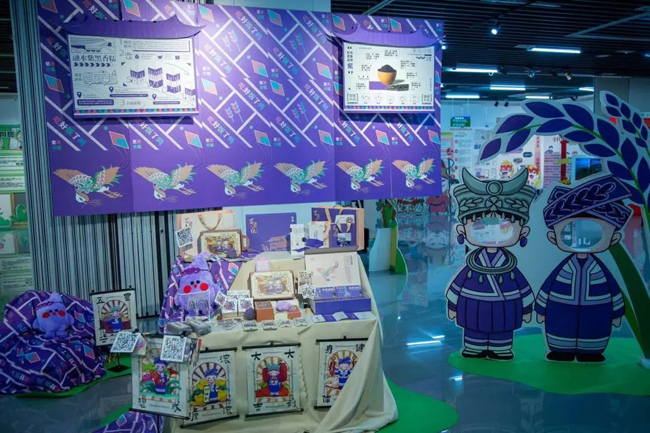展会现场,毕业生们将课堂知识和乡村农业紧密结合,把充满广西地域特色和民俗文化的设计融入特色农产品文创、营销场景中,让农产品变得时尚、温暖、有趣。