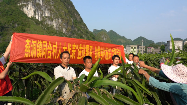 据了解,同合村火龙果基地始建于2016年,目前种植面积达54亩。主要采取“公司+基地+贫困户”(村集体经济)的产业发展模式,将产果的全部收入作为村民的分红,2022年已达8.6万元,预计今年村民分红总数达30万元。