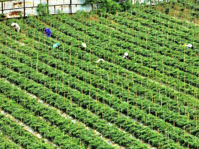 辣椒产业属于劳动密集型产业,除草、施肥、采摘等环节都需要不少季节性劳动力。该基地从种植到采摘,用工量最高可达近百人,带动周边村农户人均月创收超2000元。