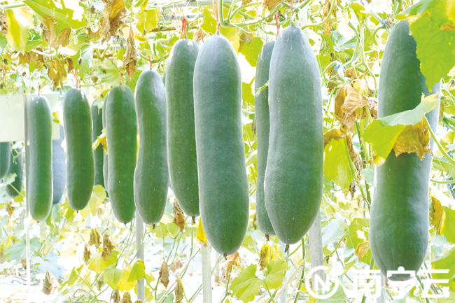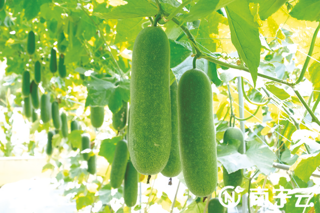 “广西光温资源非常丰富,给黑皮冬瓜种植带来了天然优势。它一年可以种植两季。因为错峰上市,所以价格好、收益高。”吴永官告诉记者,广西农业科学院蔬菜研究所是最早开展冬瓜品种选育研究的研究所之一,选育了一批以“桂蔬7号”为代表的抗病、优质、高产的黑皮冬瓜新品种。桂蔬系列冬瓜品种优点突出,深受市场欢迎,其中“桂蔬7号”已成为华南冬瓜产区的标杆品种。目前,各桂蔬系列品种已经成功转化,转化总金额超过100万元,是广西少有的转化金额达到百万元以上的蔬菜新品种之一。以“桂蔬7号”为核心技术之一的科技成果“冬瓜优异种质创新、多样化品种选育及提质增效技术研究与应用”获得2019年度广西科技进步一等奖。
