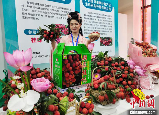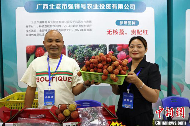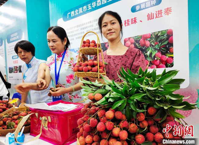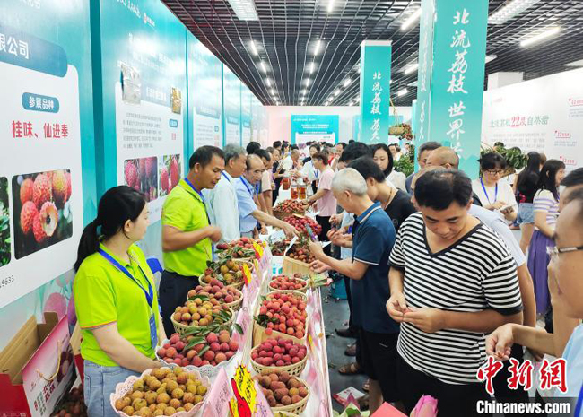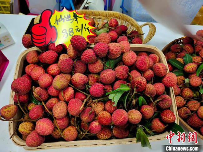图为展销现场展示的荔枝。 黄艳梅 摄