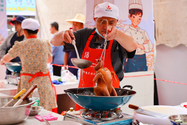大厨正在烹饪陶圩鸡。黄雨尘 摄