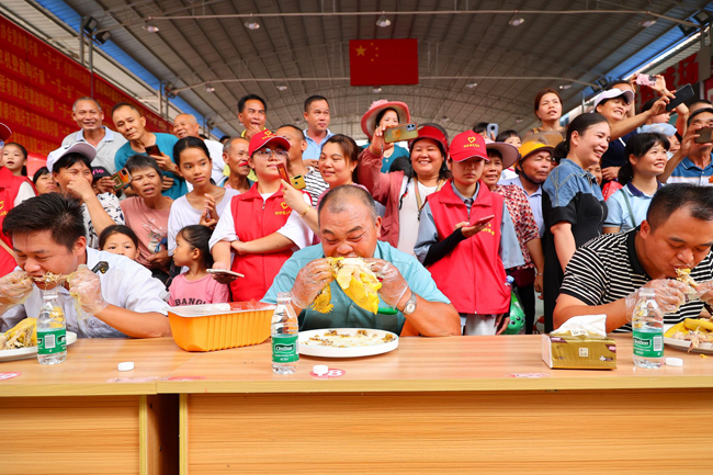 有趣的吃鸡大赛引来众多游客观看。黄雨尘 摄
