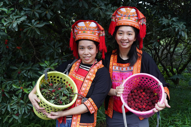 瑶乡姑娘在展示摘下来的杨梅——莫斌 摄
