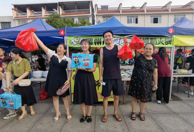 游走在特色农产品展销集市,数百名“江湖吃货”嗨吃了螺蛳粉、东泉香肉粉、本地酸等特色美食,纷纷直呼过瘾。