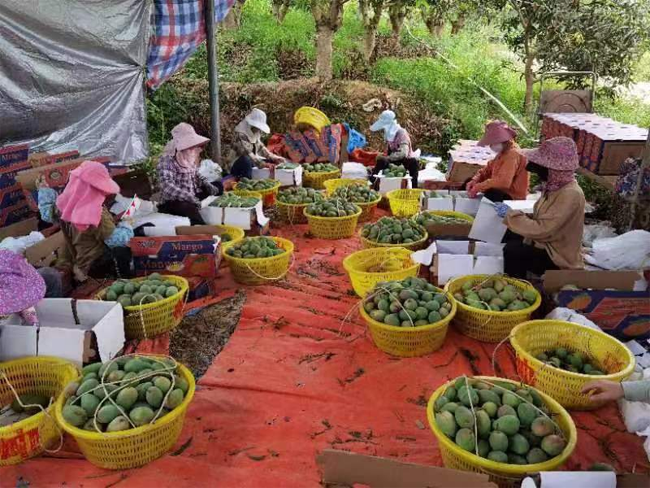 “这两天我们瑶寨芒果收入真可观,李星颖、陈星家芒果收入约7万元,盘武现家收入大概3万元。”屯组长陈就高兴地说到,目前还在基地采摘芒果的有20多户,产值约60多万元,每户均有3万元的收入,芒果是我们瑶民增收致富的“黄金果”。