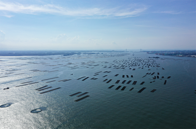 ▲茅尾海域万亩蚝排。