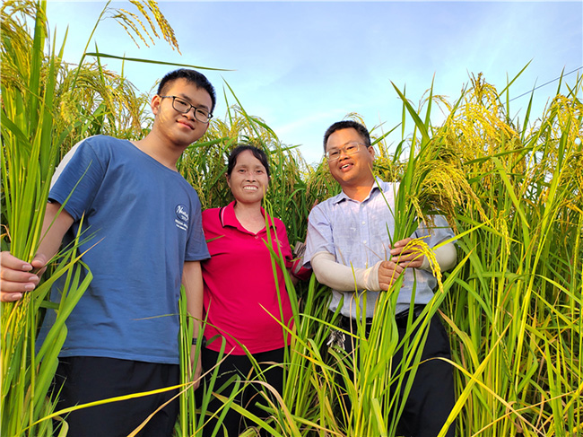 图为记者近日拍摄的“巨型稻”,稻株高达2米。(见习记者梁云龙摄)