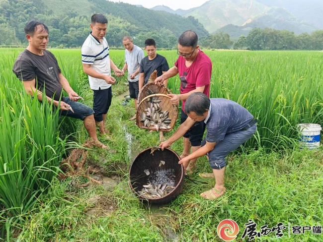 “我们的这个中稻稻谷亩产量在600公斤左右,同时每亩田可以收获禾花鱼20-25公斤,按目前市场价90元/公斤计算,每亩稻田可增收1800多元。”大渭洞村委石冲田村村民唐朝生说。