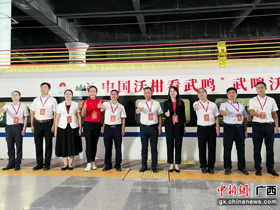 伴随着贵南高铁全线开通运营,武鸣正式接轨高铁时代,冠名首发的“武鸣沃柑”主题专列将作为“流动名片”,利用高铁辐射效应,助力区域经济高质量发展,推动更多农特产品走出广西,走向世界。
