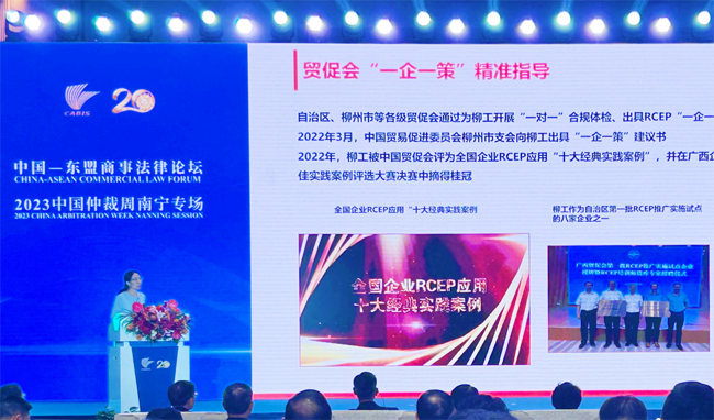 柳州市贸促会推荐柳工集团法律合规部总监韦江溢作为专家代表在法律论坛上开展主题为《柳工合规管理实践经验》的演讲,并在会后接受媒体采访。广西万益律师事务所合伙人潘海清作为主笔单位代表接受媒体专访。