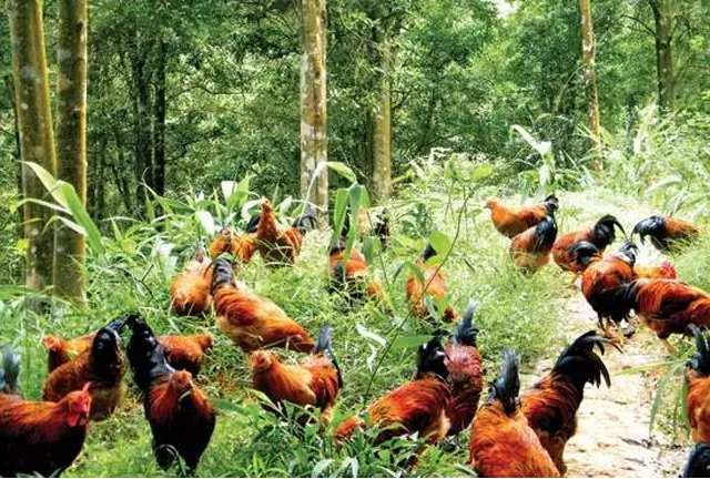宁明县现有八角林面积28万亩,在八角林下发展优质土鸡养殖业,具有得天独厚的资源条件优势。加上宁明县属亚热带季风气候区,气候温和,雨量充沛,年平均气温20.8℃-22.4℃,年日照时数1600多小时,日照率53%,年无霜期长达340多天。适宜的温度,充分激活了八角香鸡的觅食能力,使其生长发育良好;充足的光照,让露天养殖的八角香鸡合成足够的维生素A和D促进钙的吸收,不仅使其体格健壮,而且有利于维护其视觉健康,使其在野外觅食地上八角籽、草籽、昆虫的概率大增,更全面地补充蛋白质、维生素等营养物质,成就了八角香鸡外观清秀灵活、体形细致紧凑、瘦肉率高的特定品质,市场前景非常可观。