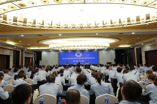 为扎实推进农业综合行政执法能力提升,努力打造一支纪律严明有正气、作风过硬有担当、竭诚为民有温度的“三有”执法队伍,10月17日—19日,2023年全区农业综合行政执法业务技能培训班在桂林市举办。自治区农业农村厅党组副书记、副厅长许瑾出席开班仪式并讲话。