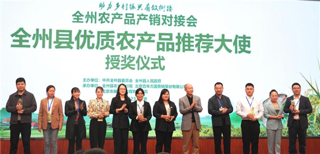在会议期间,一场隆重的表彰典礼热烈上演,旨在褒奖那些对全州县农业品牌发展、销售作出突出贡献的企业。这些卓越的贡献者被授予一项特别的荣誉——“全州县优质农产品推荐大使”,这无疑彰显了他们的荣誉与贡献。他们的努力与贡献,使得全州县的优质农产品得以广泛传播,让更多人了解并享受到这些美味佳品。