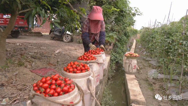 那坡镇那芘村村民陆彩恩说:“我家今年种了四亩圣女果,今年价格很稳定,现在三块一斤,大概一亩能得一万多块钱。”