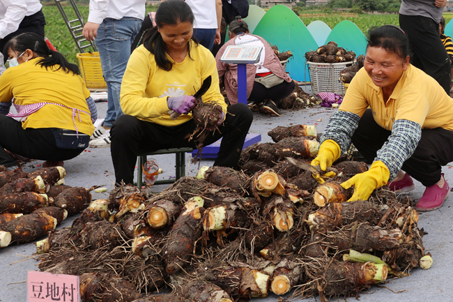 据悉,平乐县是农业大县,香芋种植历史悠久,当地盛产的香芋肉质细腻,粉糯可口,营养丰富,既是制作饮食点心、佳肴的上乘原料,又是滋补身体的营养佳品,深受消费者青睐。目前,以香芋为原料的加工系列副食品越来越多,产品畅销国内外市场。