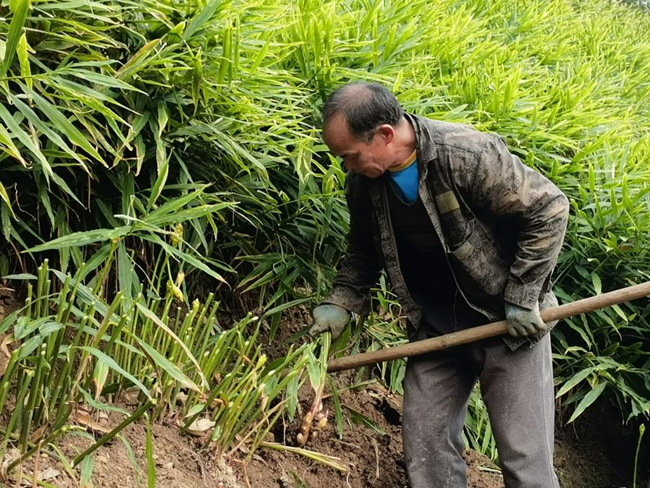 欧阳村党总支支部书记韦国华介绍:“欧阳村有近百户村民在高山山坡上种植生姜,全村种植面积达1000多亩。随着种植技术的发展,有经验的种植户从生长、施肥、选地等方面提高生姜产量,亩产达5000-6000斤,当前收购价3元/斤,种植户还可以根据市场需求选择售卖或贮藏。”