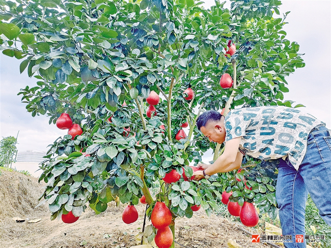 近年来,一种原产于泰国、名为“泰国暹罗红柚”的特色水果被引入玉林规模种植,并被命名为“鸿运香柚”。当前,从试种到育苗再到发展多个千亩种植区,该特色水果正在玉林的乡村土地上不断开枝散叶、开花结果,为玉林乡村振兴事业孵化着一个新的产业项目。