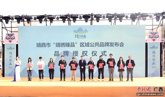1月19日,2024 年靖西市“靖绣臻品”公共品牌发布会在南宁举行,现场正式发布了“靖绣臻品”公共品牌并为靖西市桂糯食品有限公司等10家企业授予“靖绣臻品”公共品牌授权书。