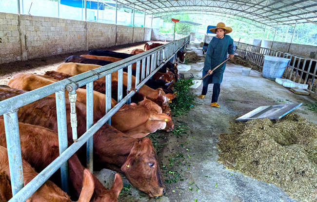 这座位于广西德保县东凌镇陇桥村的肉牛养殖示范基地,是该县通过产业专项帮扶资金及帮扶单位投资实施肉牛养殖项目的成果之一。基地总投资约80万元,上级财政资金投入55万元,广西艺术学院帮扶资金5万元。2021年,陇桥村通过产业专项帮扶资金及帮扶单位投资实施肉牛养殖项目,实现对牛棚、硬件设施、购牛、租地、种植牧草等进行扩大建设。目前,基地占地面积达到4000平方米,其中包括牛棚面积1200平方米,饲养着35头本土黄牛和30头西门塔尔牛。