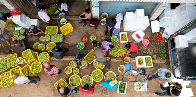 果满枝头喜丰收,时下正是早李成熟采摘季。在桂林市平乐县张家镇张家村和水山村的李子种植基地,果农们正在忙着采收成熟的李子。而此时,在张家村水果代销点也是一片忙碌景象。果农们将新鲜采摘下来的早李运到收购点,工人们则忙着分拣、装箱、搬运、称重,随后由客商收购运往市场。
