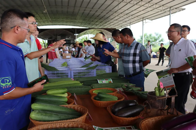 现场展示了冬瓜、黄瓜、苦瓜、丝瓜,玉米、南瓜、茄子等近百种农作物新产品。在技术人员的专业讲解下,大家详细了解了展示品种的优势、特征、产量及销售情况,还参观万大东盟园的新品种种植展示区,仔细了解各类新品种的种植要求、生长情况等。