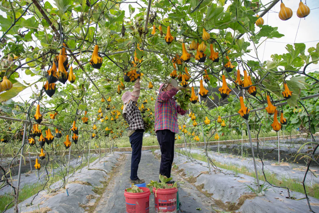 “这是万大小王子南瓜,肉厚心腔小且香甜味美”“这是万大癞可丽南瓜,肉质粉糯细腻、品质特佳”“这是万大泰香南瓜,成熟瓜口感粉面、栗糯、有奶香味。”......万大种业负责人刘朝宏介绍道。
