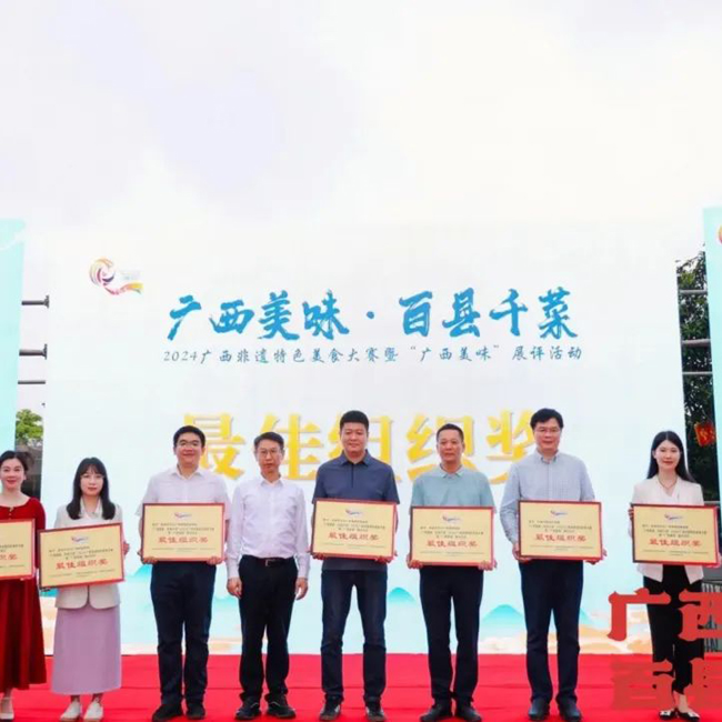 近日,由自治区文旅厅、广西旅游发展集团主办的“广西美味·百县千菜”2024 广西非遗特色美食大赛暨“广西美味”展评活动及“一城一桌菜”展评活动在南宁青秀山成功举办。来自全区各地的非遗特色菜肴、点心、小吃等400多个作品参加比赛。