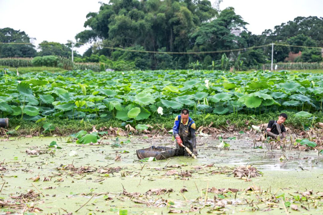藕农们正在藕田里