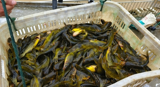 “捕鱼喽!”7月1日,在广西来宾市兴宾区桥巩镇文武村,随着一声吆喝,村民迅速投入到紧张的捕捞工作中。经过五个多月的精心养殖,该村乡村振兴现代渔业示范园今年第一批黄颡鱼迎来大丰收,平均体重达100—150克/尾,预计有2万公斤,该批次的黄颡鱼将为村带来超过60万元销售收入。
