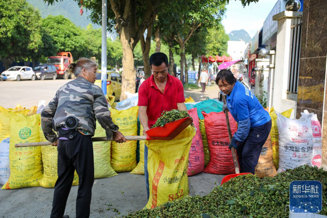 “一个圩日可收购八角鲜果30吨左右,目前收购价每斤2.5元。晾晒烘干加工后主要销往北方的批发市场,部分还出口到欧美和东南亚等地。”收购点负责人梁升冠说,理进村所产的八角色艳个大,品质纯正,香味醇厚,深受消费者青睐。