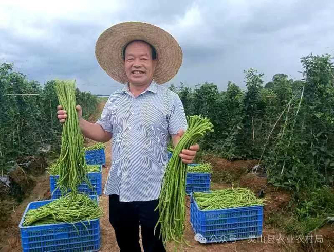 据基地负责人蒙祥升介绍,今年的豇豆亩产量超过4000斤,较往年显著提升,每斤收购价在2.2-2.4元之间,价格比往年提高0.4元左右,采摘下来的豇豆通过加工制作成豆角干、酸豆角等腌菜销往广东和广西的各个城市。