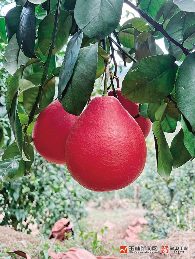 “好意头,又靓又香,大家应该都中意!”作为广东茂名人,刘金坤敏锐地察觉到暹罗红柚的商业价值。2020年,他引进了一批暹罗红柚枝条,在兴业县石南镇富阳村建立育苗基地,通过嫁接的方法在柚子树上繁育果苗。“天时地利,玉林是福地!”在玉林深耕多年,陈金坤当然熟知玉林的气候温度和泰国差不多;而且不止容县,整个玉林都适合种沙田柚和柑橘类水果,有护理果树和有效预防病虫害的经验和成功方法。