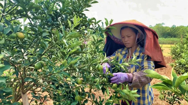 为保证金桔的产量和品质,合作社固定聘请了周村村民在基地务工管理果园,给当地群众增加了家门口就业渠道。“基地固定为周边10多名群众提供就业岗位,在基地对果树进行护理、剪枝、摇花等,每个月3500元。”黄兆说。