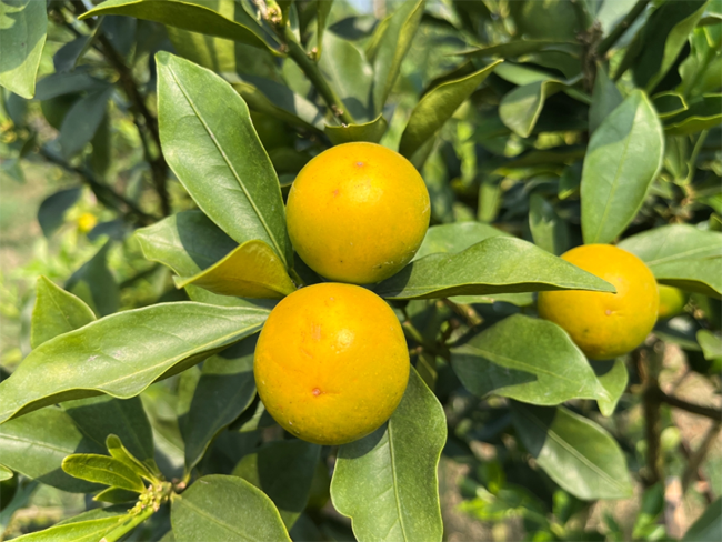 据了解,脆蜜金桔,具有生长快、高产稳产、耐寒、耐热等特点,成熟的脆蜜金桔果大、果皮香甜滑脆,肉质细腻清香,与普通金桔相比,品质更佳,口感更好,润口润心,深受市场喜爱。
