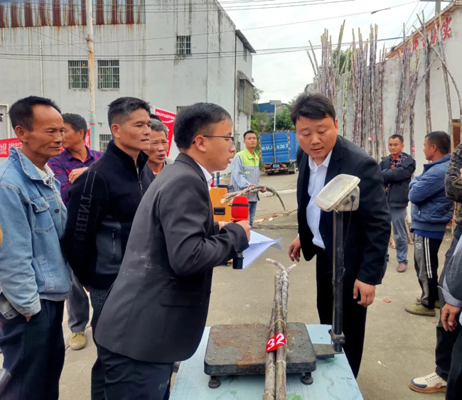 11月26日,兴宾区牧原水肥第二届“蔗王”争霸赛在正龙乡东阳村举办,来自兴宾区牧原场区周边使用牧原水肥农户中的33户蔗农精心挑选自家品质最优、长相最佳的甘蔗前来参赛,互相交流学习种植经验。