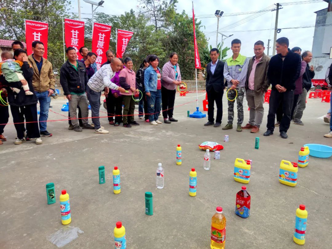 比赛当天还开展了套圈小游戏,现场群众踊跃参与,在欢声笑语中收获鸡、鸭、饮料、日用品等奖品,满载而归。