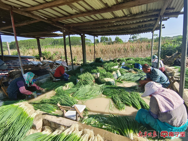 村民正在整理香葱。