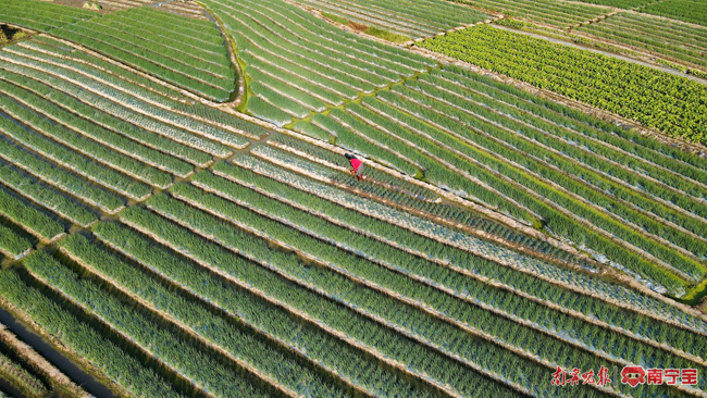 拔葱,清洗,捆绑,装车……眼下正值南宁市江南区江西镇香葱收获时节。走进江西镇田间地头,放眼望去,一片片绿意盎然的香葱长势喜人,微风吹过,送来阵阵葱香。葱农们正忙着采收香葱,现场一派繁忙景象。